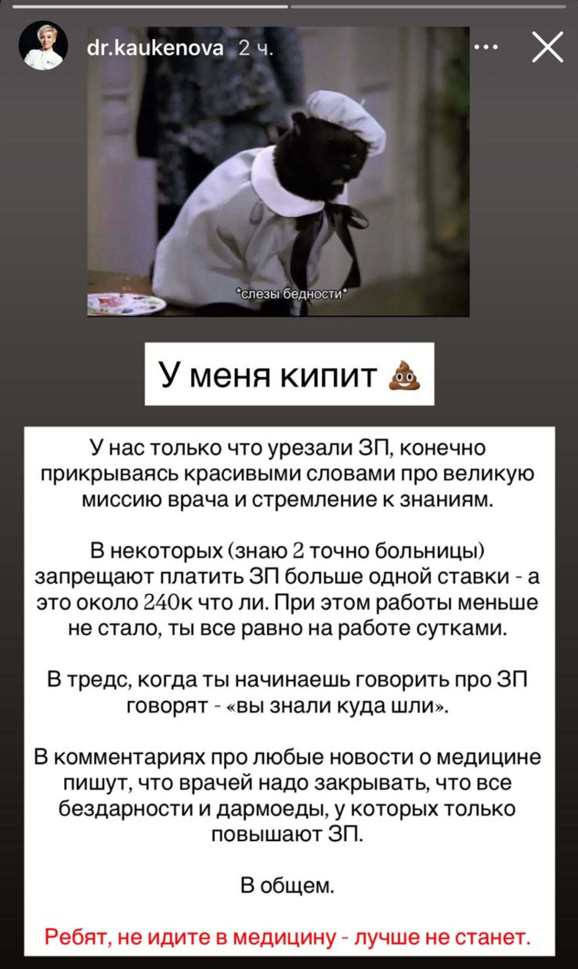 В последние годы в Казахстане наблюдается растущее недовольство среди молодых врачей, которое наглядно продемонстрировала Ботагоз Каукенова, резидент хирургии и популяризатор доказательной медицины. В своем посте она выразила свою обеспокоенность по поводу снижения зарплат и увеличения нагрузки на медиков, что стало «последней каплей» для многих молодых специалистов.