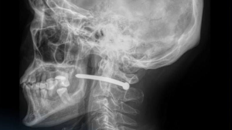 "Во время ремонта он по неосторожности получил травму гвоздём из пневматического пистолета. Рентгенография показала, что гвоздь прошёл очень близко к шейному отделу позвоночника", - отметили в медучреждении.