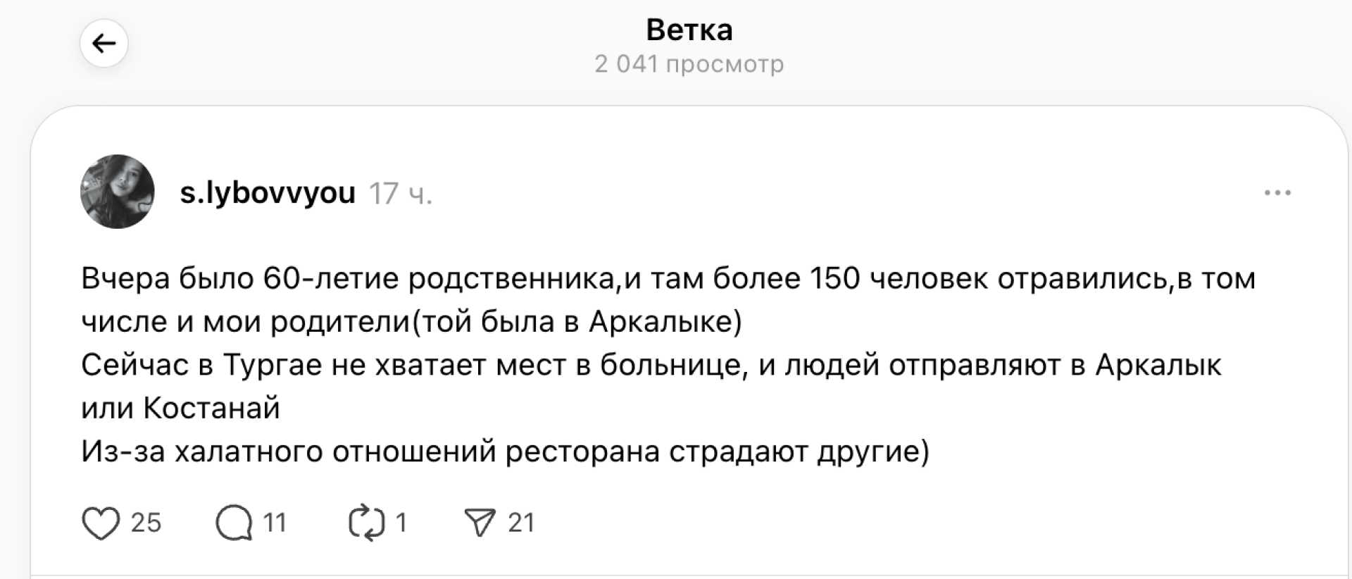 В Аркалыке зафиксировано массовое отравление гостей, произошедшее во время празднования 60-летия одного из родственников. По информации, предоставленной автором поста, более 150 человек, включая родителей девушки, начали испытывать недомогание после торжества, которое прошло в ресторане.
