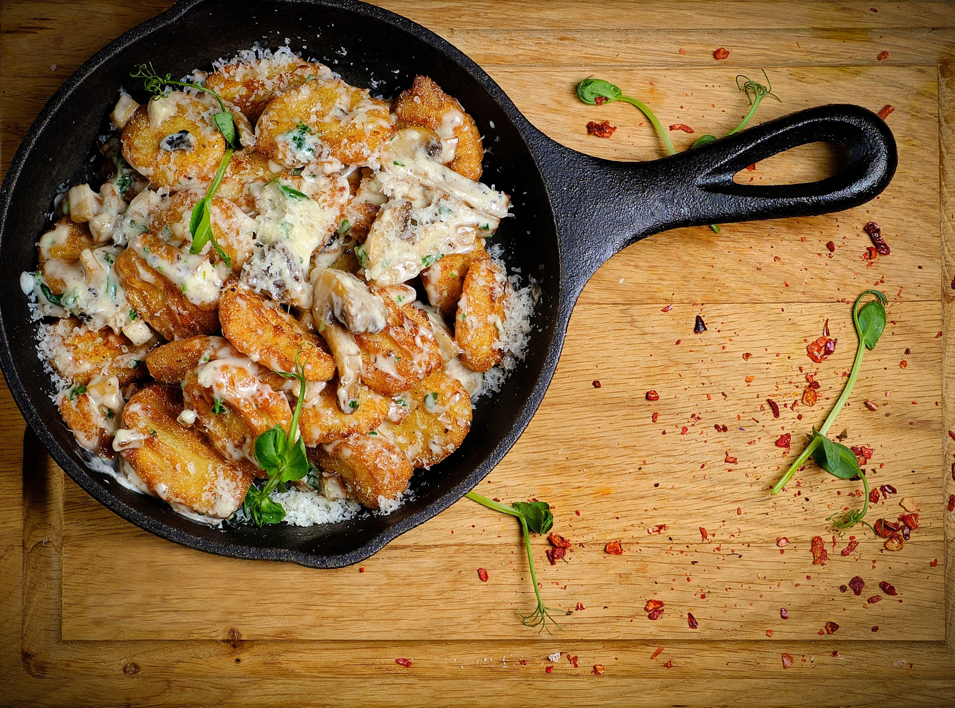Полейте горячей заправкой готовые ньокки — это создаст ароматное и слегка острое блюдо с азиатским акцентом.