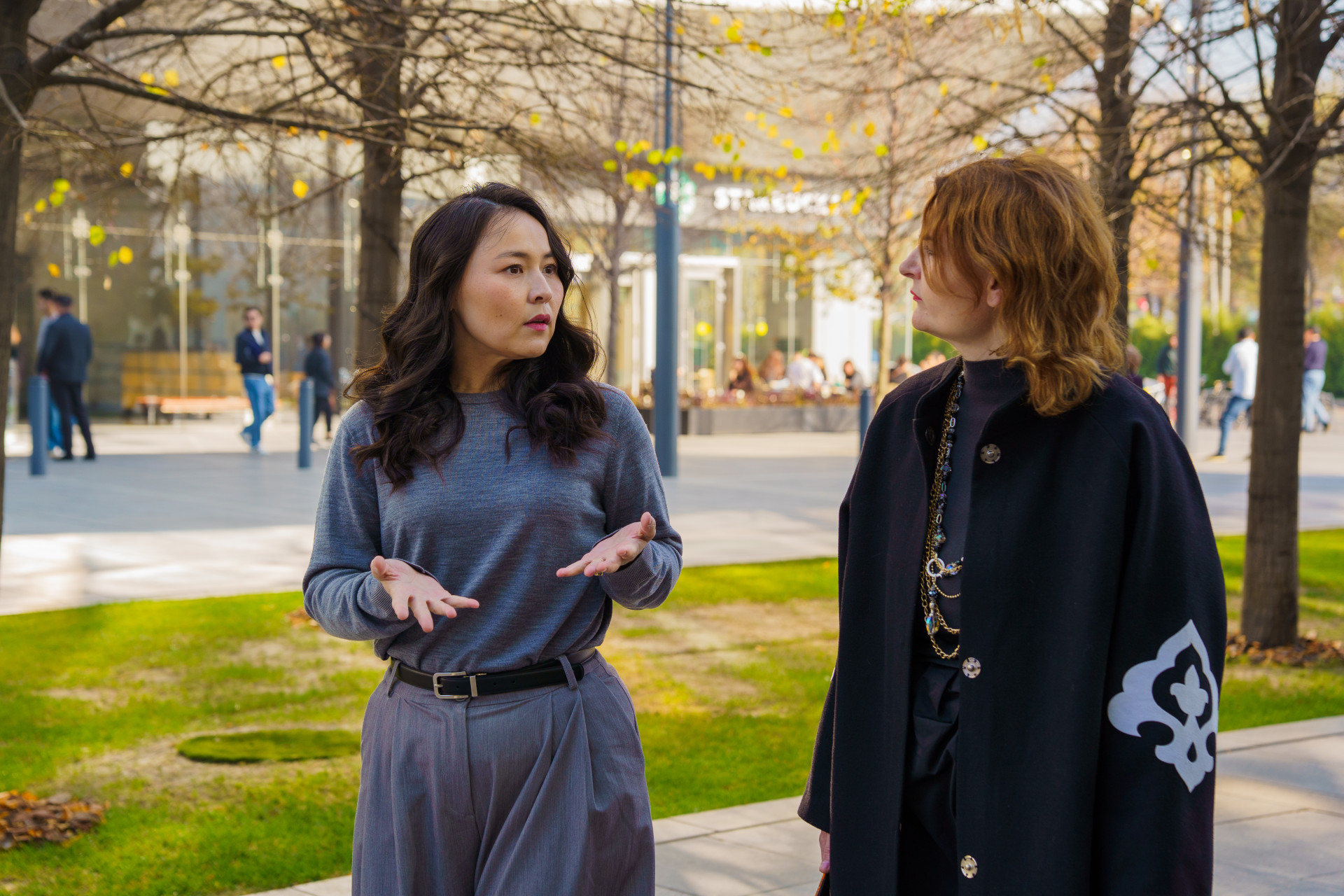 Журналист Оксана Акулова беседует с Асель Аульбековой. Фото ©️ Tengrinews.kz / Болат Айтмолда