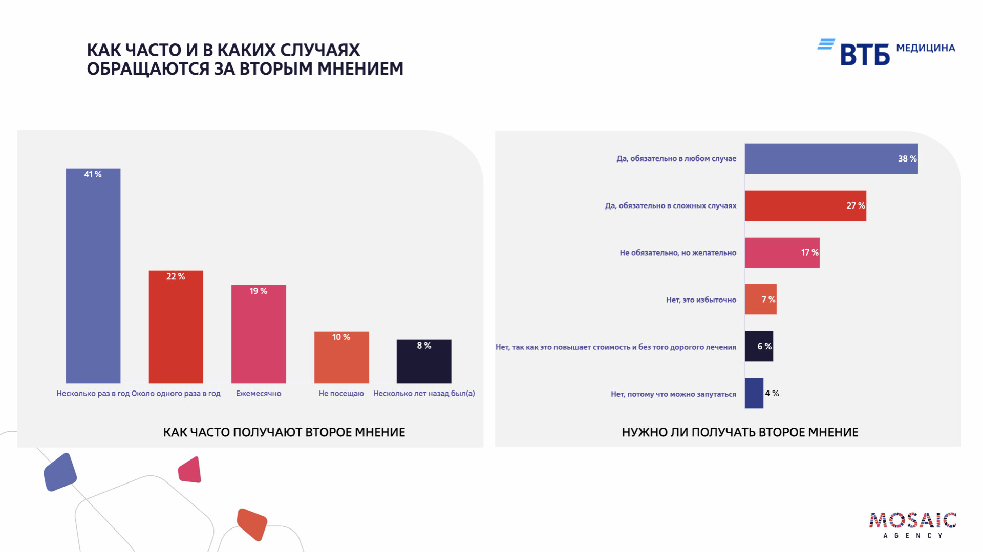 Согласно международным данным, запрос на второе медицинское мнение может привести к изменению диагноза в 15-20% случаев, а план лечения корректируется у 35-55% пациентов. В компании ВТБ Медицина представили результаты недавнего опроса.