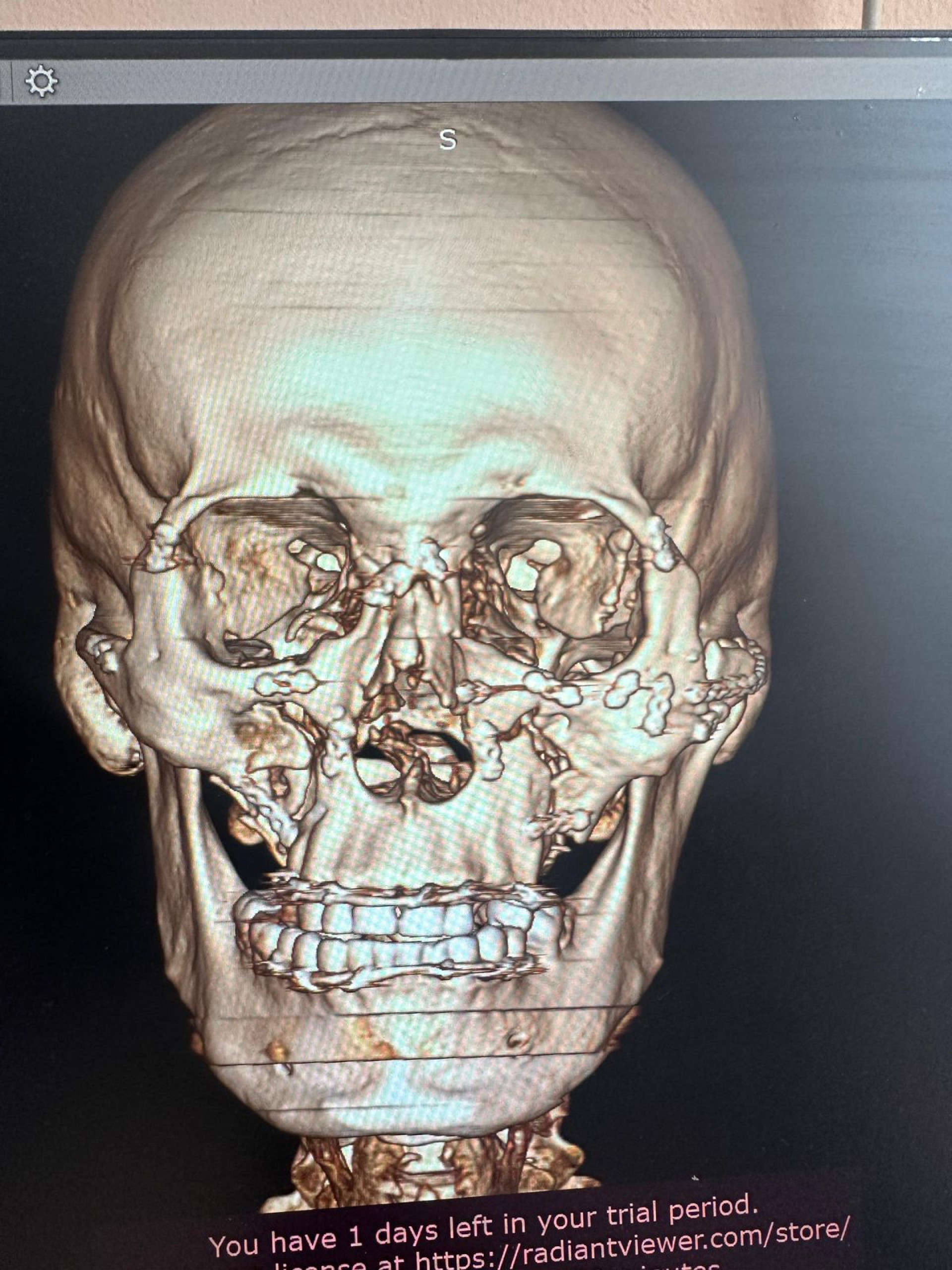Пациент поступил с выраженным болевым синдромом, значительным отеком и деформацией лица, а также с нарушением носового дыхания и затруднениями при приеме пищи и речи. Компьютерная томография подтвердила наличие множественных переломов со смещением костных фрагментов.