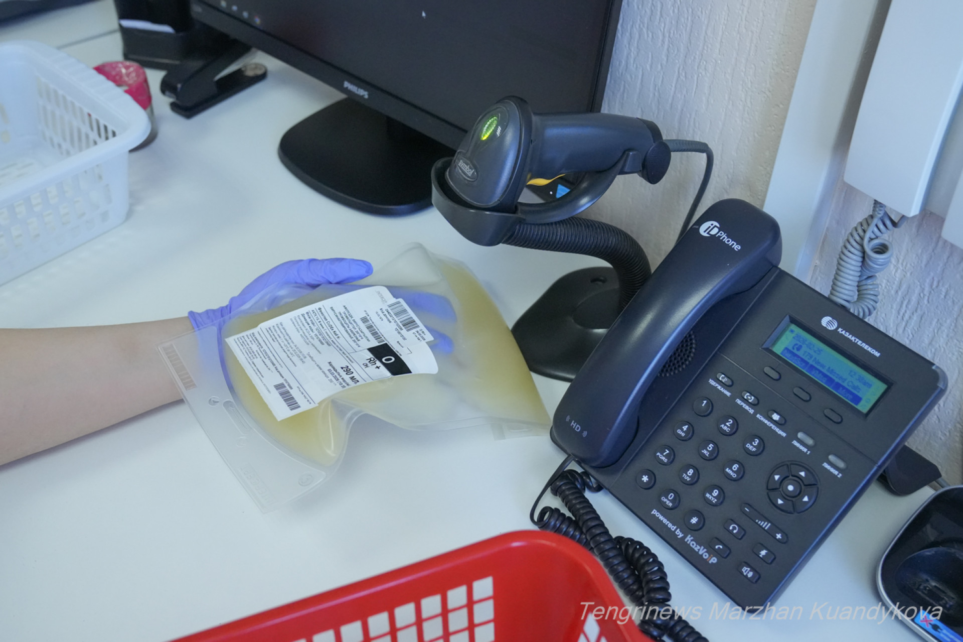 Кровь укладывают в термоконтейнер. Фото: Маржан Куандыкова