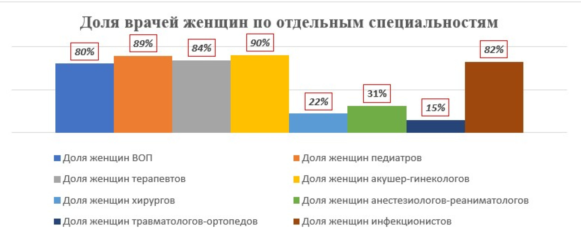 По информации Министерства, особенно высока доля женщин в тех направлениях, которые ежедневно принимают основной поток пациентов: