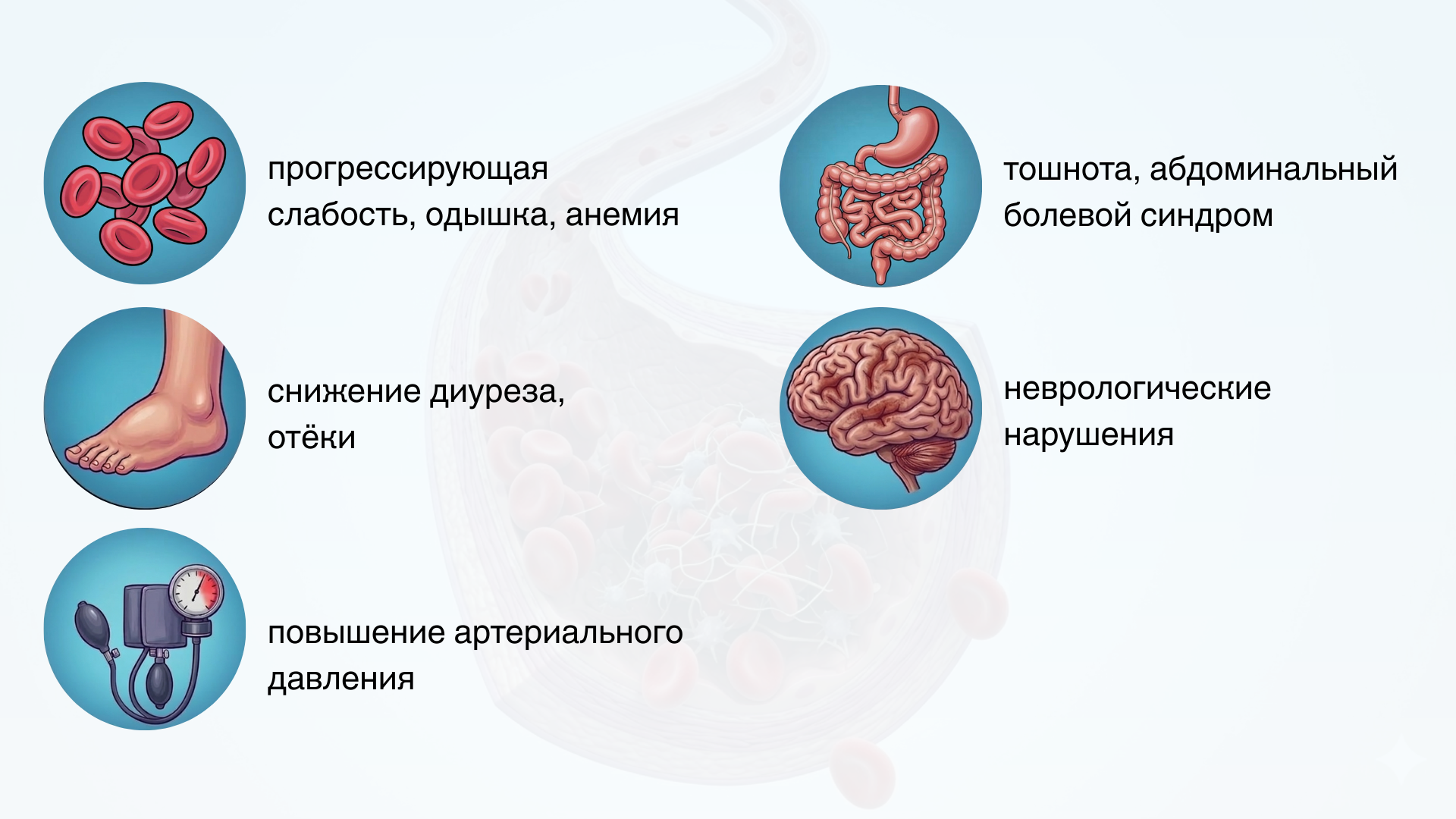 "Клинические проявления могут быть разнообразными, так как тромботическая микроангиопатия — это собирательное состояние. Она может развиваться в рамках аГУСа или быть связана с гемолизом и повреждением эндотелия сосудов, что связано с нарушениями иммунной регуляции", — объясняет врач.