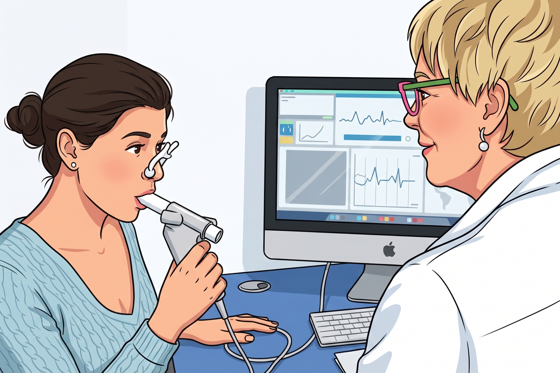 Для диагностики ХОБЛ используется спирометрия, также известная как спирография или тест функции внешнего дыхания (ФВД). Это простая процедура, но она требует серьезных усилий от пациента. Во время теста пациента просят глубоко вдохнуть и сильно выдохнуть в специальную трубку. Процедура должна проводиться строго в соответствии с международными стандартами.