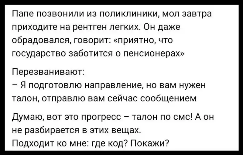 Один из таких случаев произошел с пожилым мужчиной, которому позвонили «из поликлиники» и пригласили на рентген. Позже «врач» попросил его продиктовать код, пришедший на телефон. К счастью, рядом была дочь пенсионера, которая поняла, что это мошенничество, и предотвратила передачу кода.