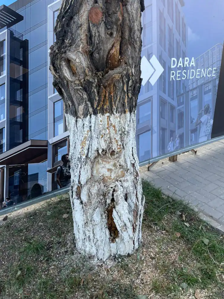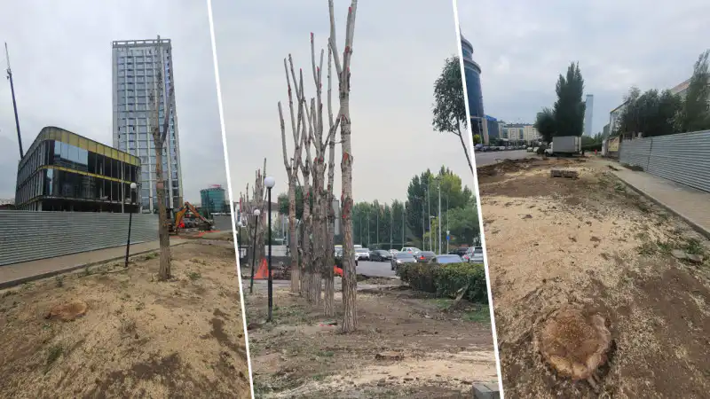 В редакцию обратился урбанист Улыбек Киманов, который с возмущением заявил, что часть деревьев на участке недалеко от его дома срубили под корень, другую часть обрезали, оставив голые стволы. По его словам, десятки жильцов квартир жилого комплекса "Арайлым" пожаловались на срубку деревьев в районе.