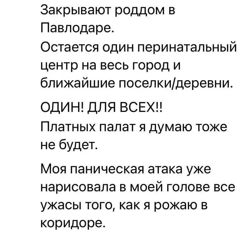 Управление заверило, что областной перинатальный центр готов обеспечить необходимую помощь пациенткам. Также в регионе продолжают работать родильные дома в Аксу, Экибастузе и при всех районных больницах.