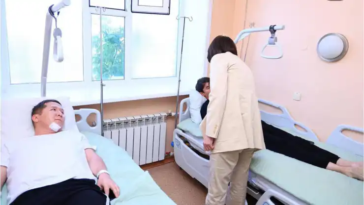 Министр здравоохранения Казахстана Акмарал Альназарова посетила врачей, пострадавших в результате нападения в Караганде. По ее словам, медики получили серьезные травмы, включая сотрясение мозга, переломы носа, множественные ушибы и гематомы.