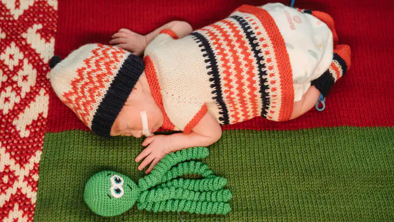 Изделия из шерсти (100% натуральной) помогают детям тратить энергию не на обогрев, а на восстановление. Шерсть не только согревает, но и стимулирует движения, выполняя функцию массажа. Волонтеры вяжут комплекты, которые включают плед, распашонку, носочки, шапочку и специальные игрушки с щупальцами. Эти игрушки помогают успокоить детей, имитируя пуповину матери и позволяя малышам удерживать их, что также снижает уровень стресса.