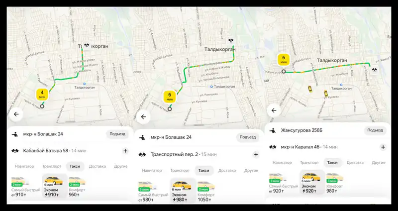 Талдыкорган — небольшой город, и здесь не принято спешить. Такси обойдется значительно дешевле, чем в крупных городах. Например, поездка по городу в пятницу утром стоила максимум 980 тенге.