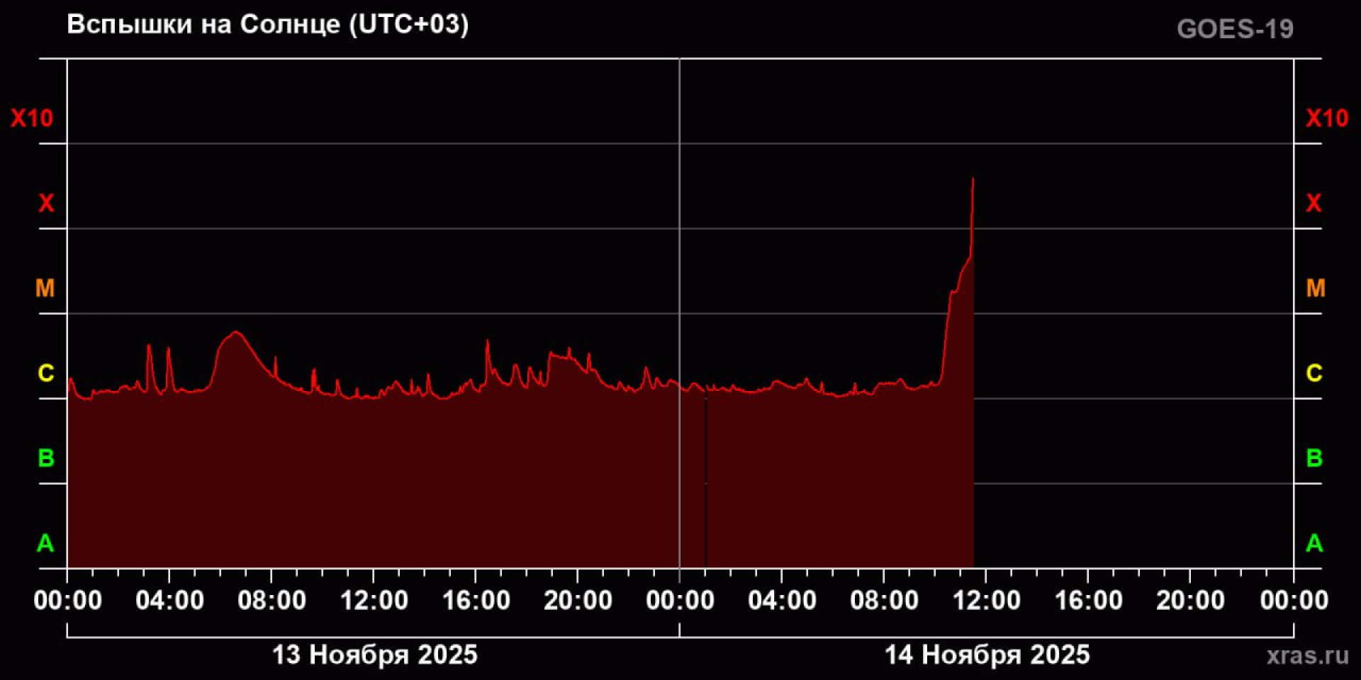 Новая вспышка произошла в той же области Солнца, где 11 ноября была зарегистрирована вспышка класса X5.15.