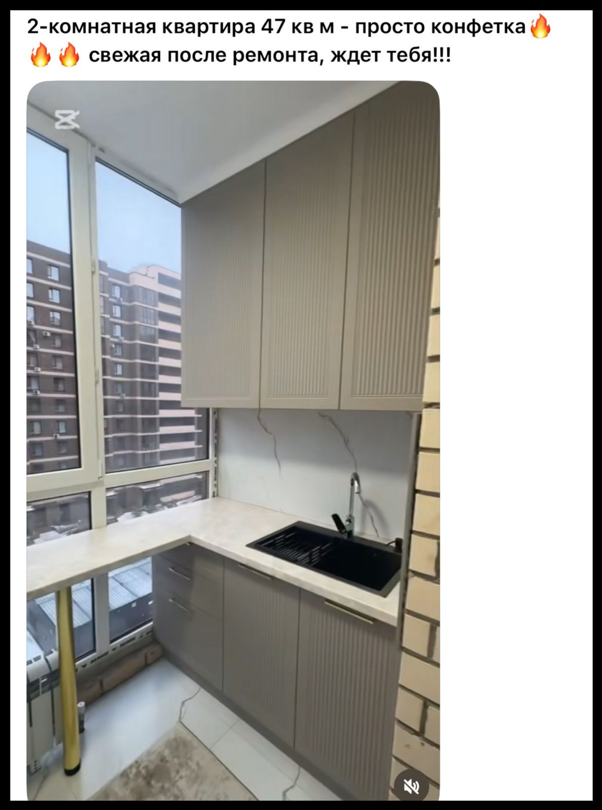 Житель Астаны разместил объявление о продаже своей квартиры, и в фотографиях пользователи заметили странное решение: на месте балкона расположены раковина, плита и кухонные шкафы, а вход в кухню осуществляется через спальню.