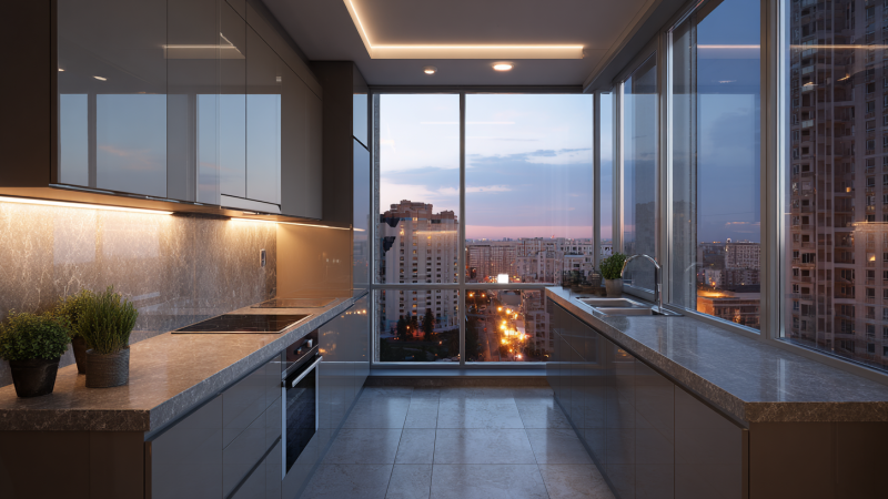 В конце ноября в социальных сетях обсуждали необычное объявление: в одной из однокомнатных квартир в Астане кухня была перенесена на застекленный балкон, где разместили плиту, раковину и шкафы.