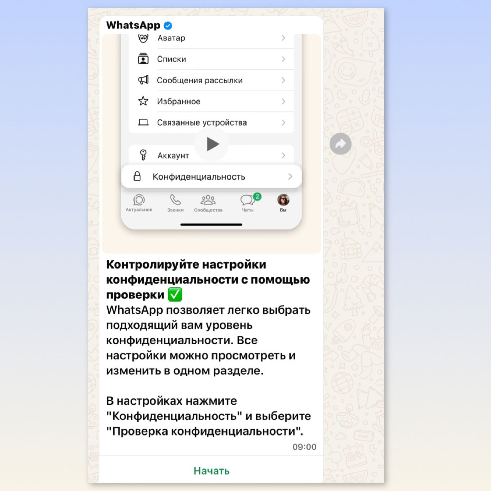 Данная функция уже доступна для пользователей WhatsApp в Казахстане. Если она не отображается, рекомендуется проверить наличие обновлений приложения в App Store или Google Play, так как обновление будет доступно поэтапно.